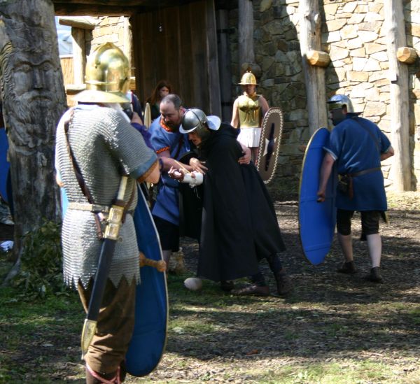 schützen einen verwundeten Auxilliaren vor keltischen Kriegern.