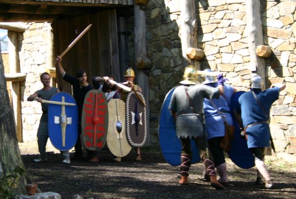 Die Auxilliare stürmen gegen den Schildwall der Kelten an....